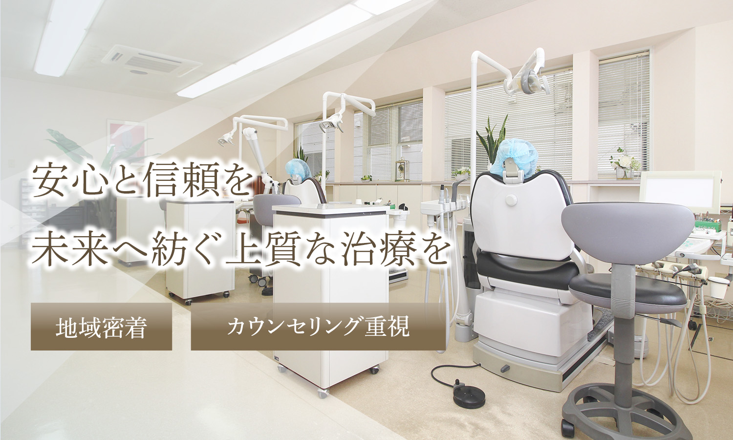 お口の状態やお悩みはそれぞれ異なります。目の前の患者さんにとって最適と思われる治療を提案し、口腔内の健康維持に努めています。地域のかかりつけ医として、丁寧でわかりやすい説明を心がけておりますので、どのようなことでもまずはご相談ください。